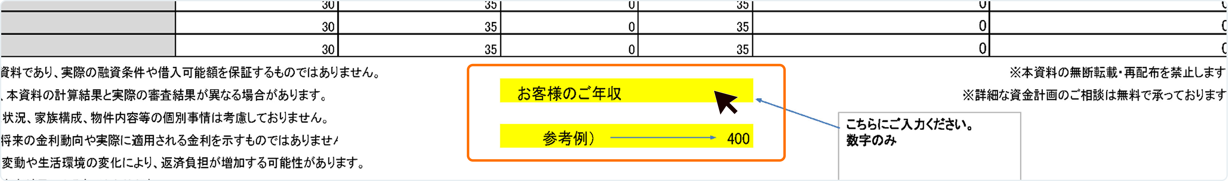 黄色の入力欄に数値を入力